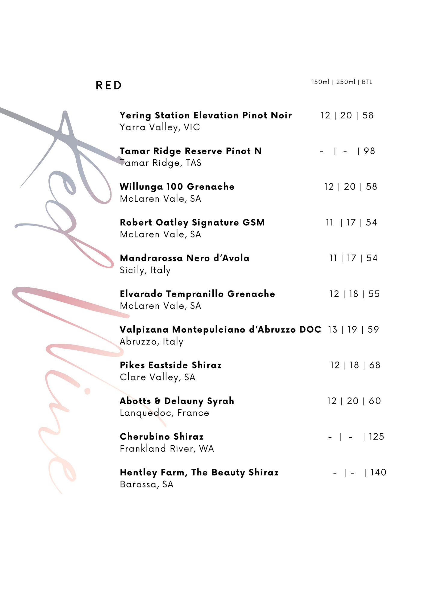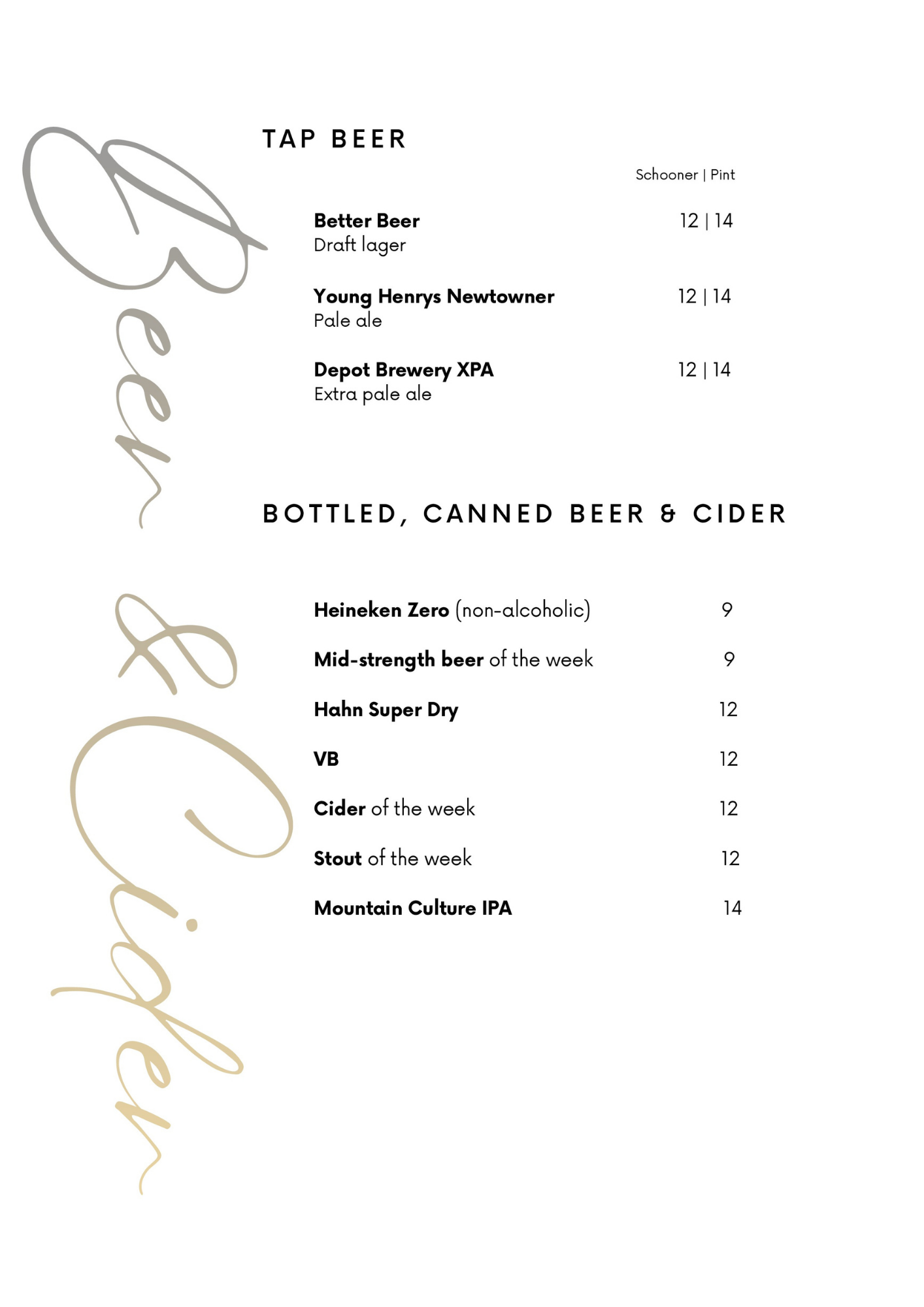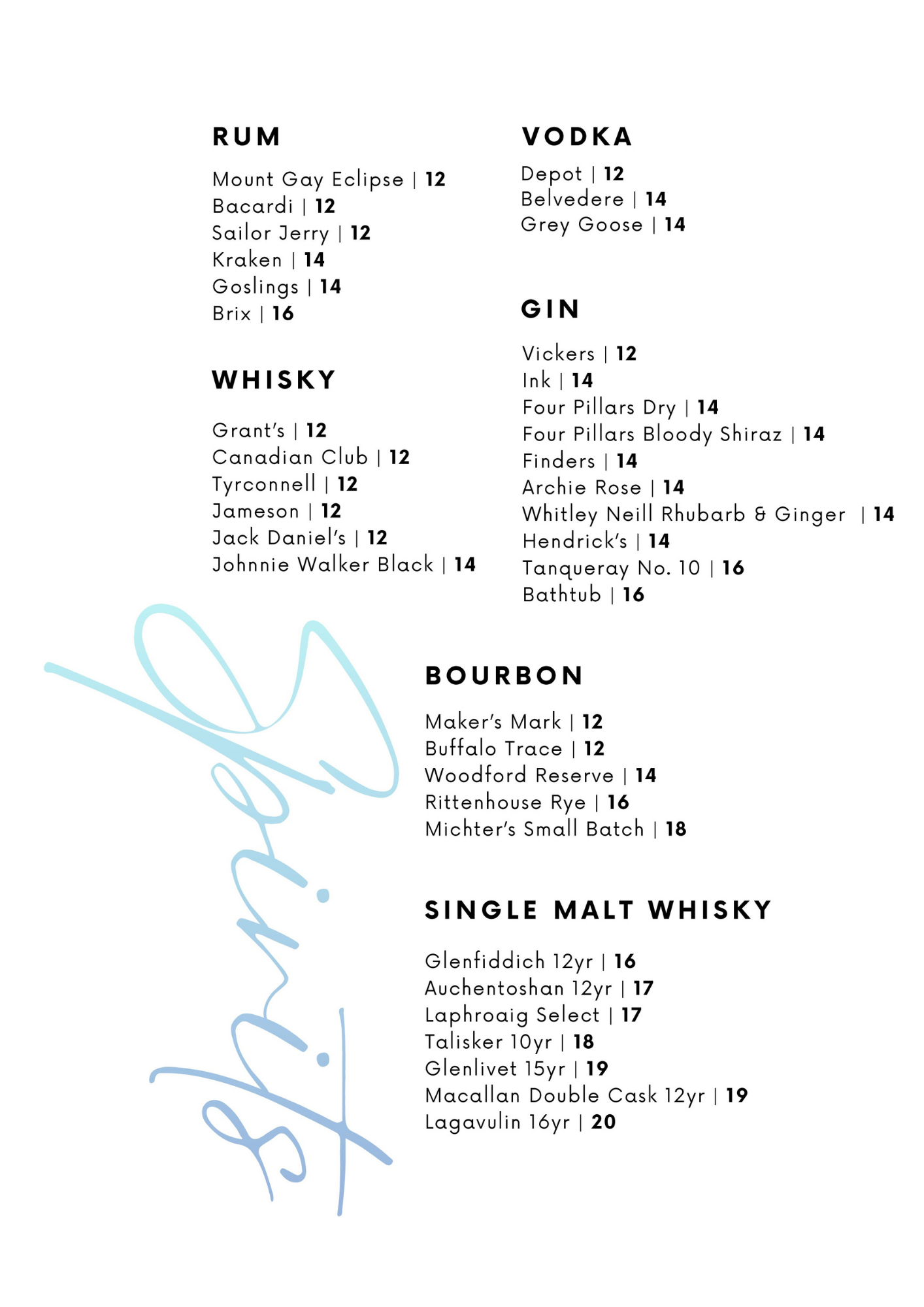 Drinks Menu